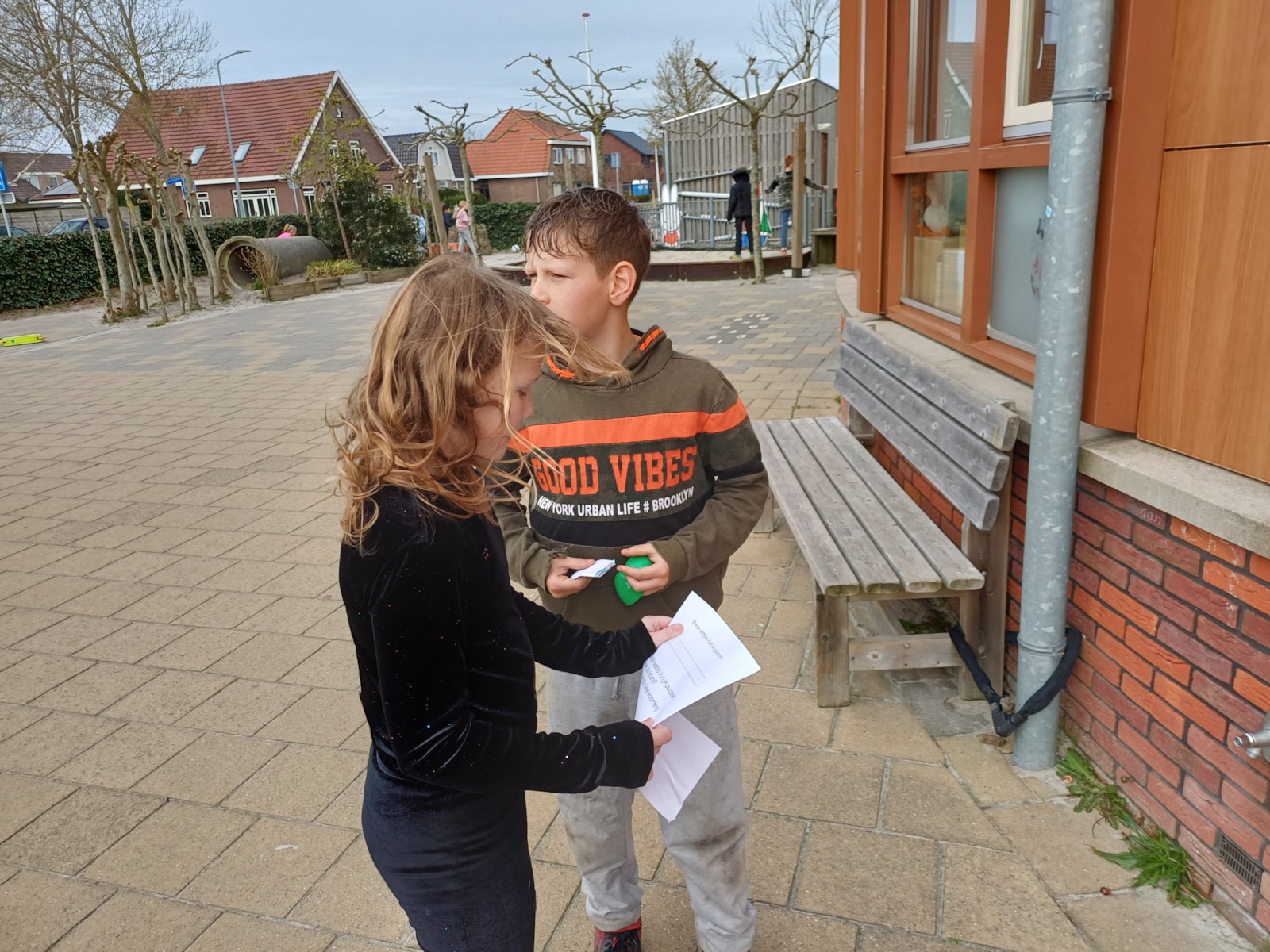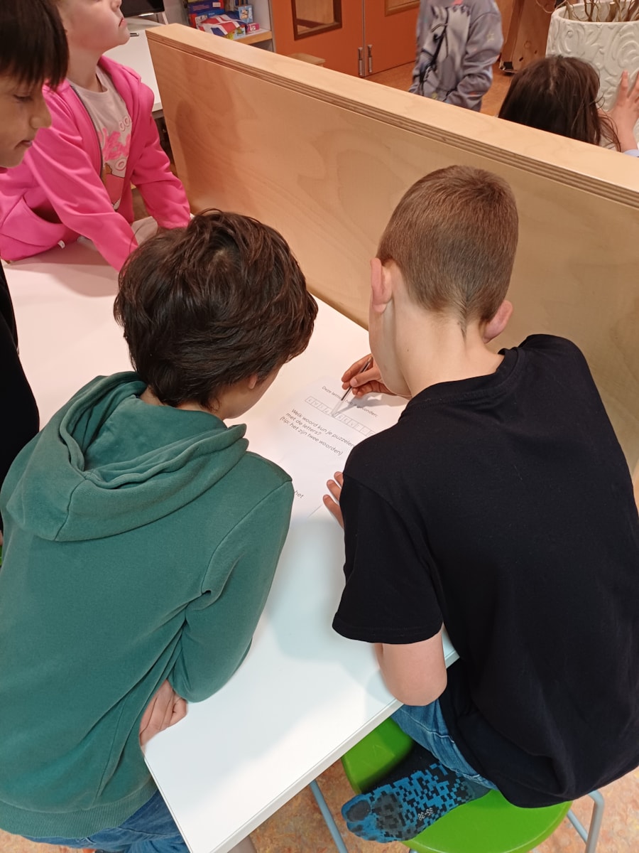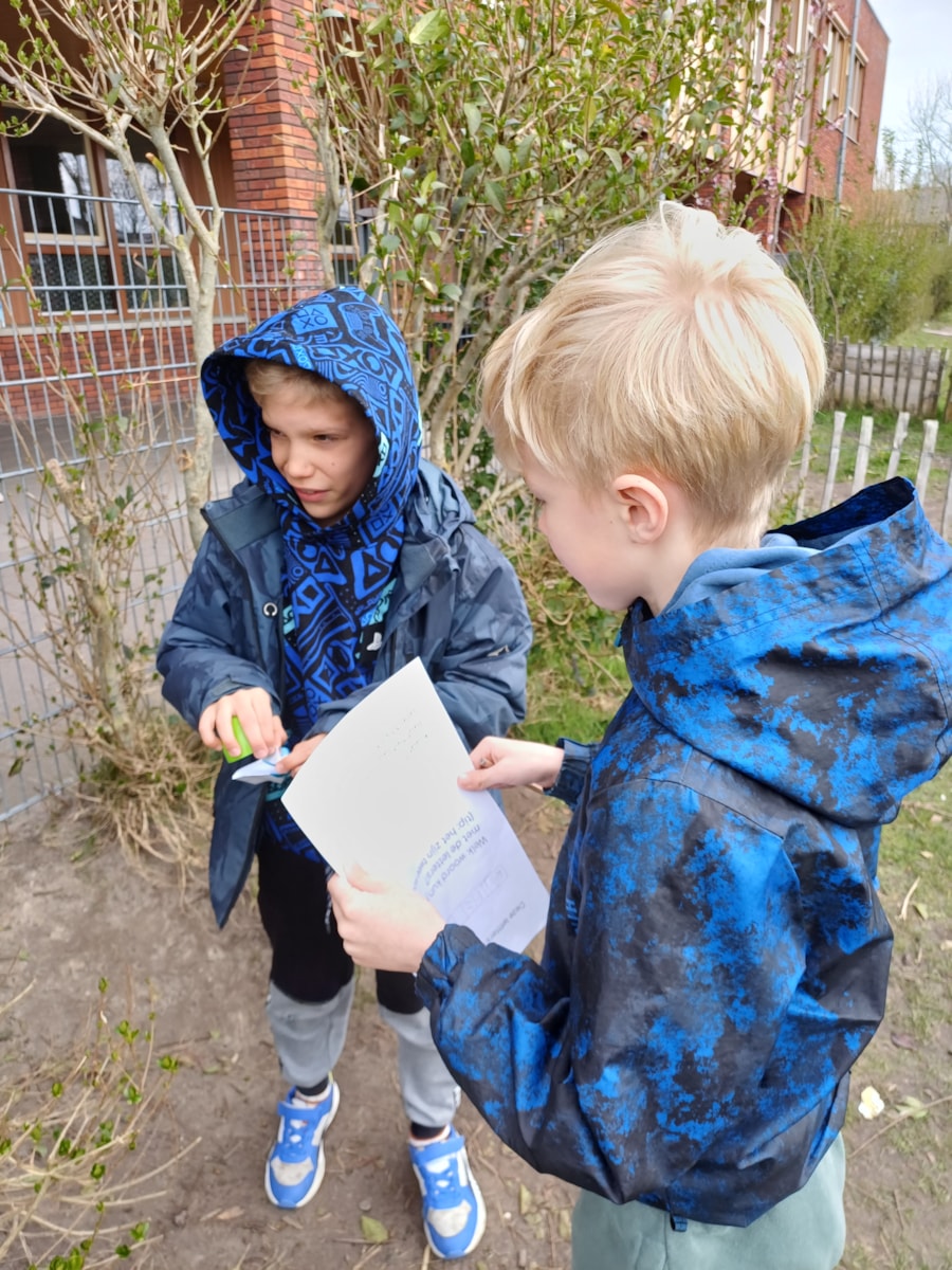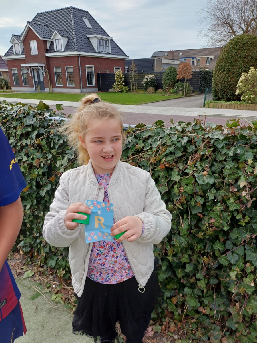 Vandaag gingen de kinderen in groepjes op zoek naar paaseieren, in de paaseieren zaten letters verstopt.